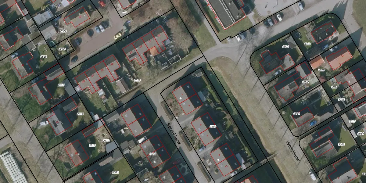 Het perceel waarop Berenklauw 1 staat heeft een oppervlakte van 1596 m². Dit is een zeer groot perceel. De perceeloppervlakte wordt geregistreerd door het Kadaster. Gedetailleerde informatie over de maten van dit perceel kunt u vinden in het rapport Kadastrale kaart met maatvoering van Berenklauw 1.