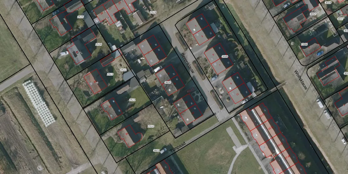 Het perceel waarop Berenklauw 8 staat heeft een oppervlakte van 1595 m². Dit is een zeer groot perceel. De perceeloppervlakte wordt geregistreerd door het Kadaster. Gedetailleerde informatie over de maten van dit perceel kunt u vinden in het rapport Kadastrale kaart met maatvoering van Berenklauw 8.