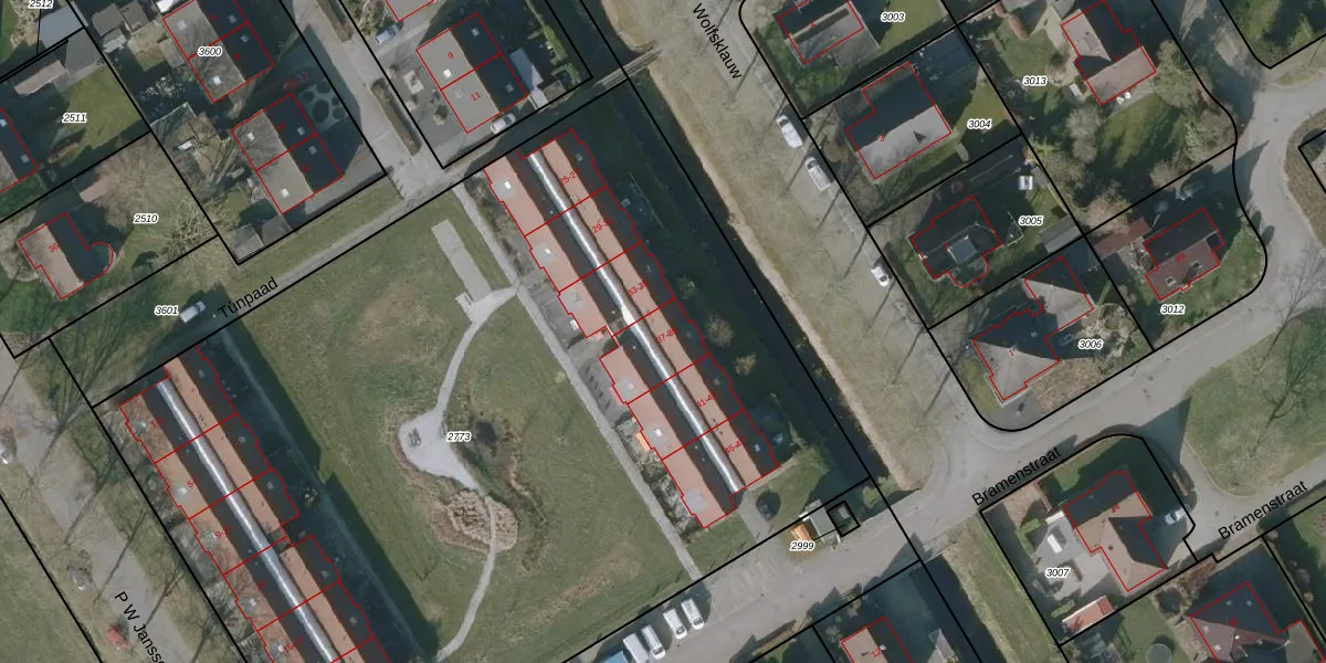 Het perceel waarop Bramenstraat 37 staat heeft een oppervlakte van 6600 m². Dit is een zeer groot perceel. De perceeloppervlakte wordt geregistreerd door het Kadaster. Gedetailleerde informatie over de maten van dit perceel kunt u vinden in het rapport Kadastrale kaart met maatvoering van Bramenstraat 37.