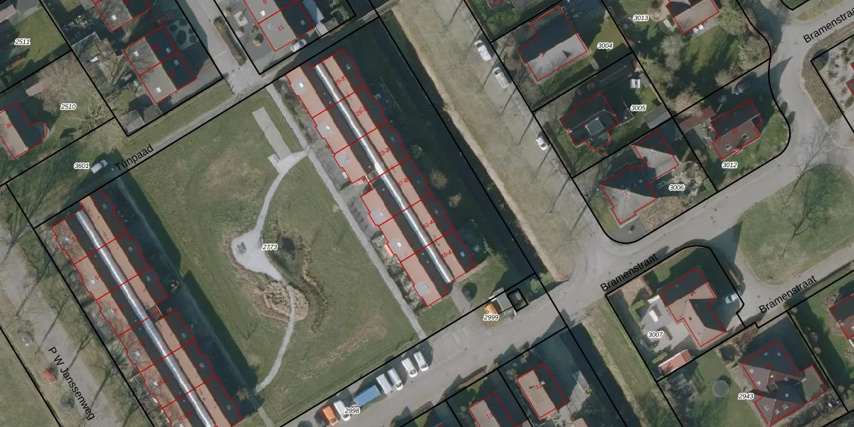 Het perceel waarop Bramenstraat 41 staat heeft een oppervlakte van 6600 m². Dit is een zeer groot perceel. De perceeloppervlakte wordt geregistreerd door het Kadaster. Gedetailleerde informatie over de maten van dit perceel kunt u vinden in het rapport Kadastrale kaart met maatvoering van Bramenstraat 41.