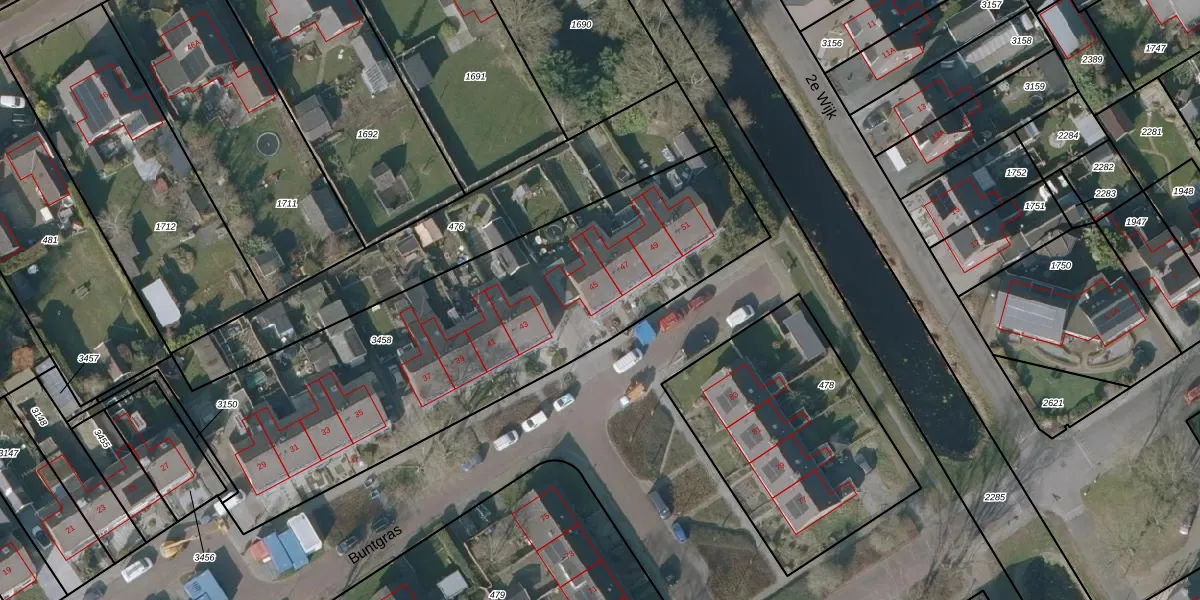 Buntgras 45 is gelegen op kadastraal perceel MDM02K3458. Deze kadastrale aanduiding is uniek en wordt gebruikt door het Kadaster om eigendomsrechten en andere zakelijke rechten vast te leggen. Het perceel maakt onderdeel uit van de kadastrale gemeente Mildam.