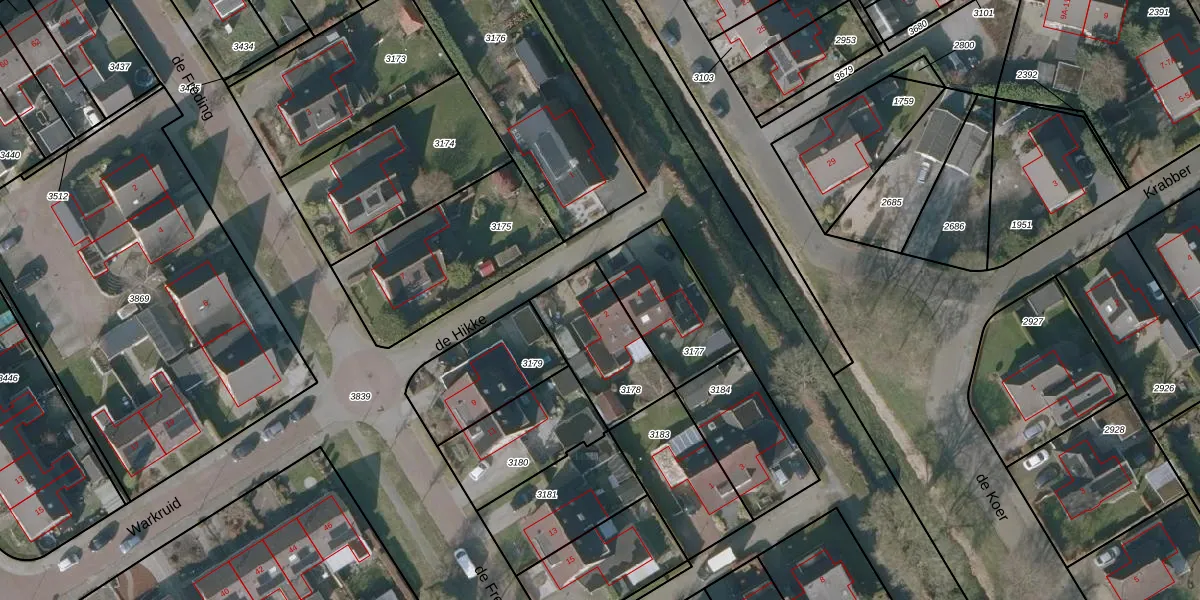 Gebruik de zoekbalk of klik op een perceel voor informatie over de adressen binnen dit perceel.