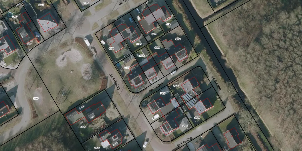 Het perceel waarop de Strikel 3 staat heeft een oppervlakte van 242 m². Dit is een middelgroot perceel. De perceeloppervlakte wordt geregistreerd door het Kadaster. Gedetailleerde informatie over de maten van dit perceel kunt u vinden in het rapport Kadastrale kaart met maatvoering van de Strikel 3.
