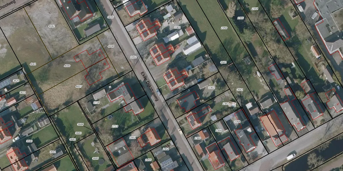 Het perceel waarop Ekke Dijkstraweg 13 staat heeft een oppervlakte van 1715 m². Dit is een zeer groot perceel. De perceeloppervlakte wordt geregistreerd door het Kadaster. Gedetailleerde informatie over de maten van dit perceel kunt u vinden in het rapport Kadastrale kaart met maatvoering van Ekke Dijkstraweg 13.