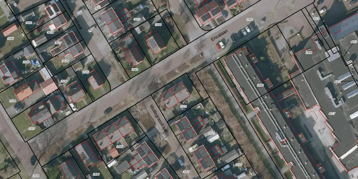 Het perceel waarop Ericalaan 14 staat heeft een oppervlakte van 397 m². Dit is een groot perceel. De perceeloppervlakte wordt geregistreerd door het Kadaster. Gedetailleerde informatie over de maten van dit perceel kunt u vinden in het rapport Kadastrale kaart met maatvoering van Ericalaan 14.