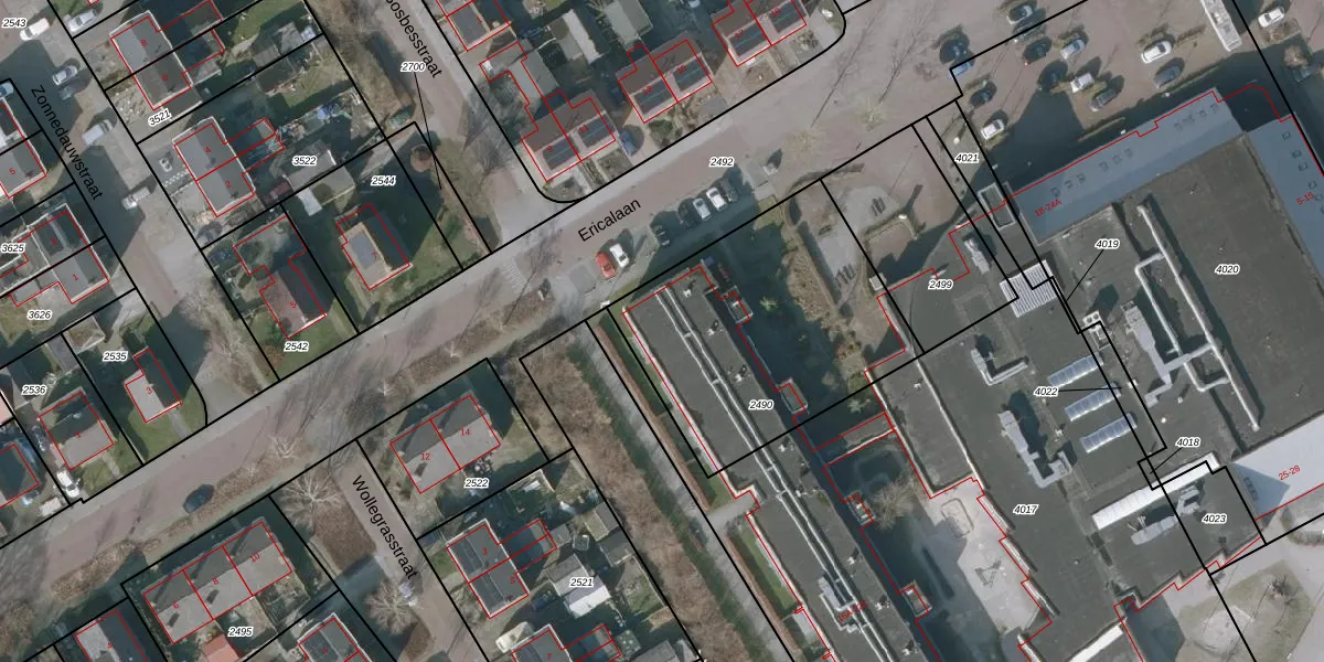 Ericalaan 16-A is gelegen op kadastraal perceel MDM02K2490. Deze kadastrale aanduiding is uniek en wordt gebruikt door het Kadaster om eigendomsrechten en andere zakelijke rechten vast te leggen. Het perceel maakt onderdeel uit van de kadastrale gemeente Mildam.