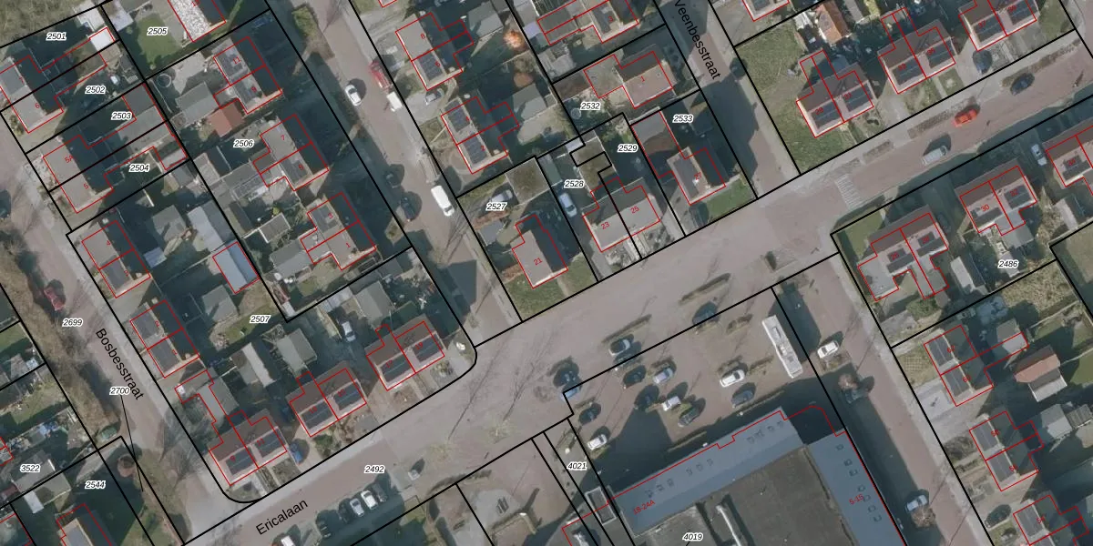 Het perceel waarop Ericalaan 21 staat heeft een oppervlakte van 420 m². Dit is een groot perceel. De perceeloppervlakte wordt geregistreerd door het Kadaster. Gedetailleerde informatie over de maten van dit perceel kunt u vinden in het rapport Kadastrale kaart met maatvoering van Ericalaan 21.
