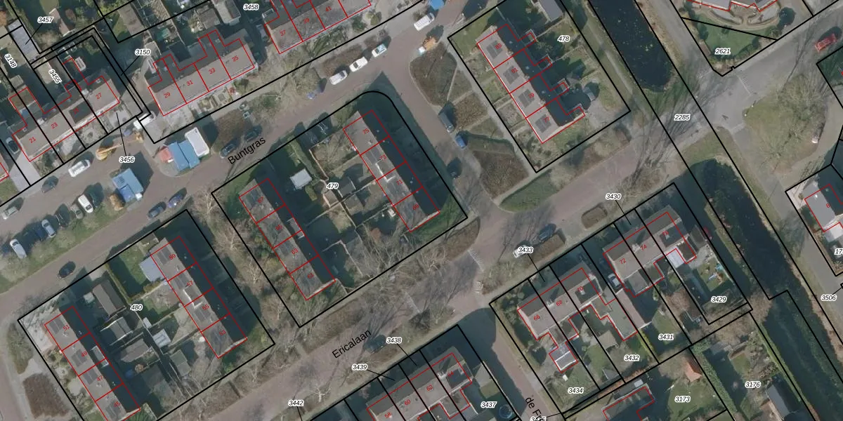 Het perceel waarop Ericalaan 69 staat heeft een oppervlakte van 1800 m². Dit is een zeer groot perceel. De perceeloppervlakte wordt geregistreerd door het Kadaster. Gedetailleerde informatie over de maten van dit perceel kunt u vinden in het rapport Kadastrale kaart met maatvoering van Ericalaan 69.
