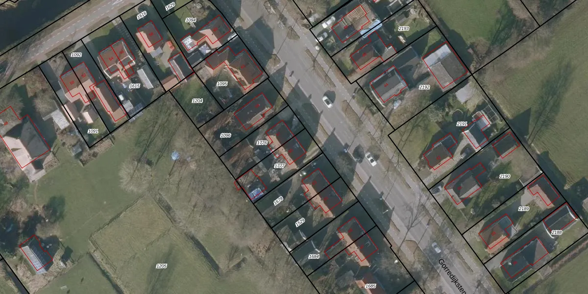 Gebruik de zoekbalk of klik op een perceel voor informatie over de adressen binnen dit perceel.