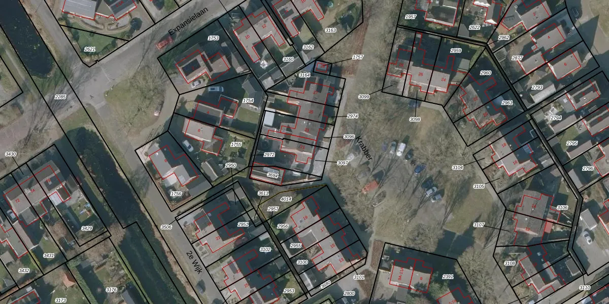 Gebruik de zoekbalk of klik op een perceel voor informatie over de adressen binnen dit perceel.