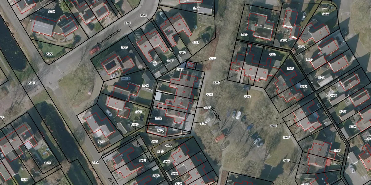 Gebruik de zoekbalk of klik op een perceel voor informatie over de adressen binnen dit perceel.