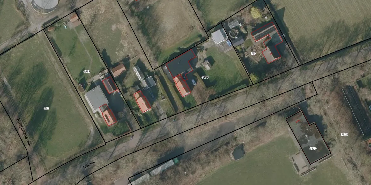 Het perceel waarop Leidijk 11 staat heeft een oppervlakte van 2935 m². Dit is een zeer groot perceel. De perceeloppervlakte wordt geregistreerd door het Kadaster. Gedetailleerde informatie over de maten van dit perceel kunt u vinden in het rapport Kadastrale kaart met maatvoering van Leidijk 11.