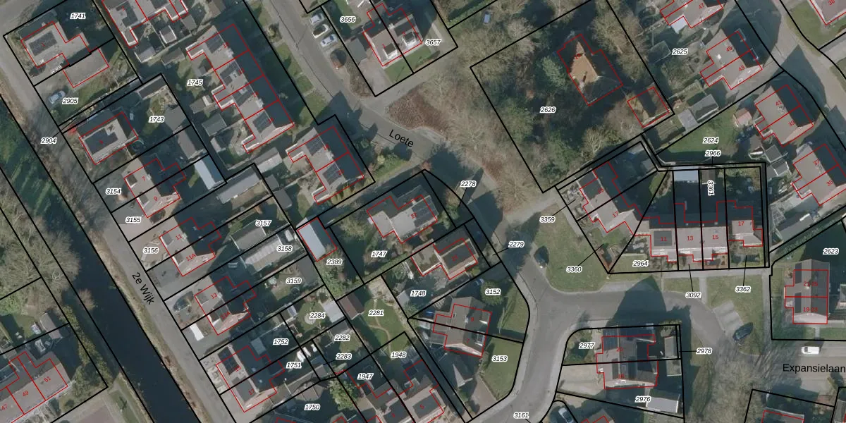 Gebruik de zoekbalk of klik op een perceel voor informatie over de adressen binnen dit perceel.