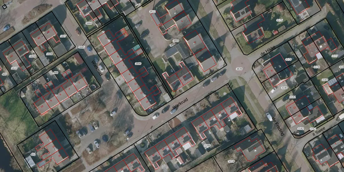 Het perceel waarop Warkruid 17 staat heeft een oppervlakte van 2024 m². Dit is een zeer groot perceel. De perceeloppervlakte wordt geregistreerd door het Kadaster. Gedetailleerde informatie over de maten van dit perceel kunt u vinden in het rapport Kadastrale kaart met maatvoering van Warkruid 17.
