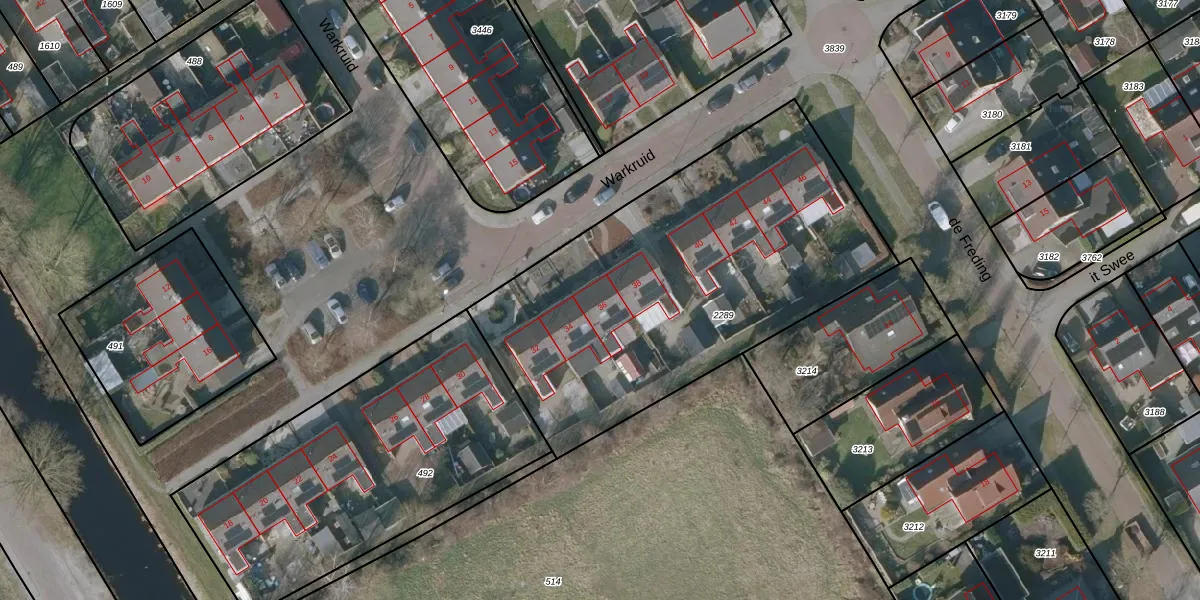 Het perceel waarop Warkruid 36 staat heeft een oppervlakte van 2040 m². Dit is een zeer groot perceel. De perceeloppervlakte wordt geregistreerd door het Kadaster. Gedetailleerde informatie over de maten van dit perceel kunt u vinden in het rapport Kadastrale kaart met maatvoering van Warkruid 36.