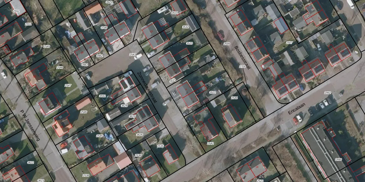 Het perceel waarop Zonnedauwstraat 4 staat heeft een oppervlakte van 602 m². Dit is een groot perceel. De perceeloppervlakte wordt geregistreerd door het Kadaster. Gedetailleerde informatie over de maten van dit perceel kunt u vinden in het rapport Kadastrale kaart met maatvoering van Zonnedauwstraat 4.