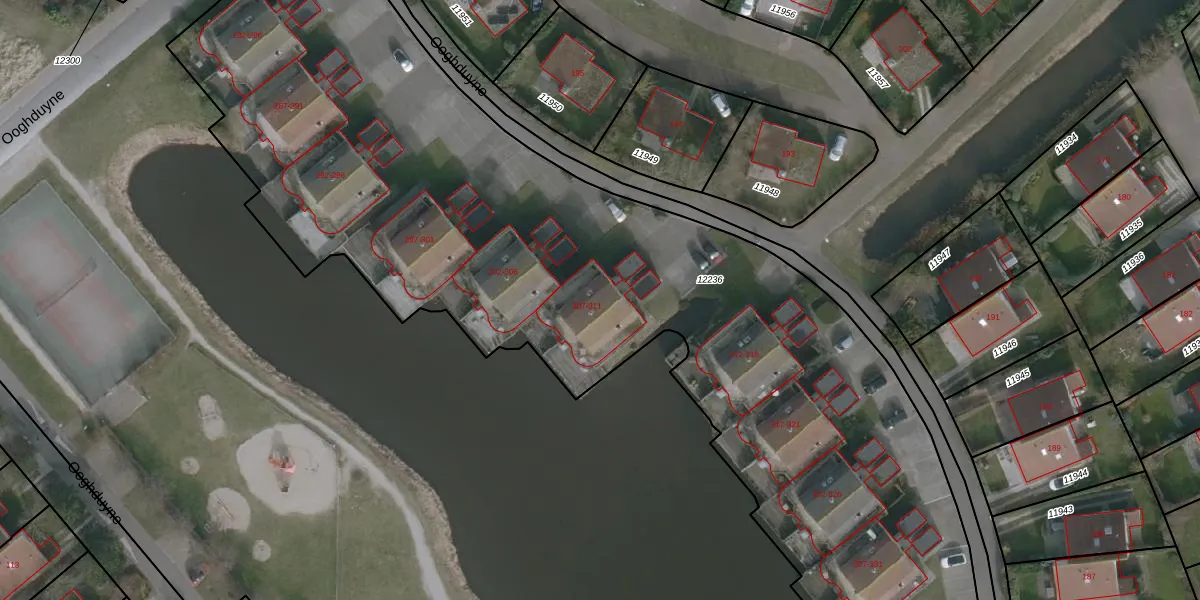 Het perceel waarop Ooghduyne 310 staat heeft een oppervlakte van 5180 m². Dit is een zeer groot perceel. De perceeloppervlakte wordt geregistreerd door het Kadaster. Gedetailleerde informatie over de maten van dit perceel kunt u vinden in het rapport Kadastrale kaart met maatvoering van Ooghduyne 310.