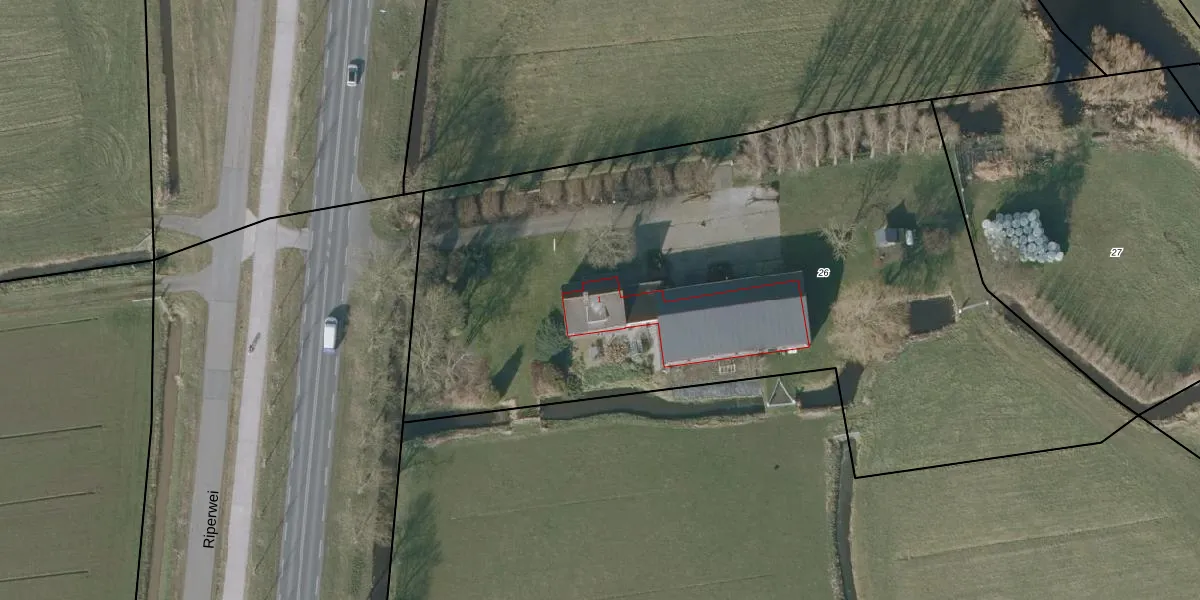 Het perceel waarop Riperwei 1 staat heeft een oppervlakte van 4550 m². Dit is een zeer groot perceel. De perceeloppervlakte wordt geregistreerd door het Kadaster. Gedetailleerde informatie over de maten van dit perceel kunt u vinden in het rapport Kadastrale kaart met maatvoering van Riperwei 1.