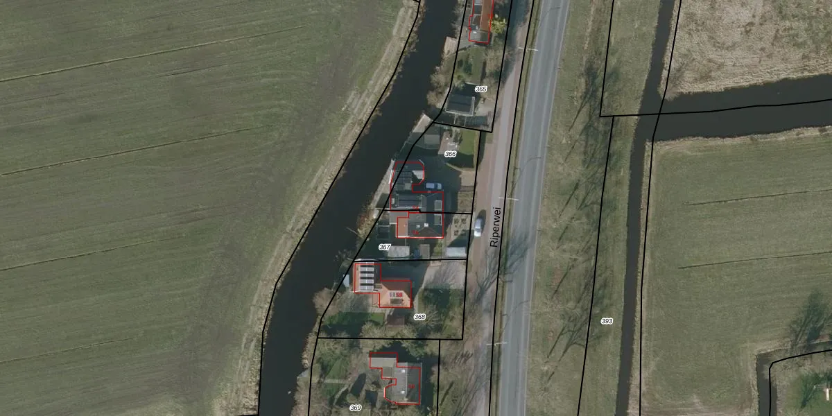 Het perceel waarop Riperwei 54 staat heeft een oppervlakte van 366 m². Dit is een groot perceel. De perceeloppervlakte wordt geregistreerd door het Kadaster. Gedetailleerde informatie over de maten van dit perceel kunt u vinden in het rapport Kadastrale kaart met maatvoering van Riperwei 54.