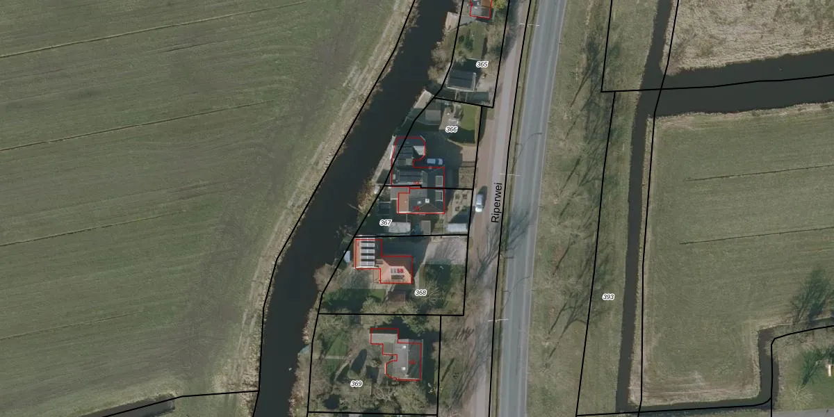 Riperwei 56 is gelegen op kadastraal perceel OPH00E367. Deze kadastrale aanduiding is uniek en wordt gebruikt door het Kadaster om eigendomsrechten en andere zakelijke rechten vast te leggen. Het perceel maakt onderdeel uit van de kadastrale gemeente Oppenhuizen.