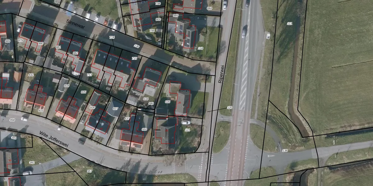 Het perceel waarop Sinnewar 26 staat heeft een oppervlakte van 583 m². Dit is een groot perceel. De perceeloppervlakte wordt geregistreerd door het Kadaster. Gedetailleerde informatie over de maten van dit perceel kunt u vinden in het rapport Kadastrale kaart met maatvoering van Sinnewar 26.