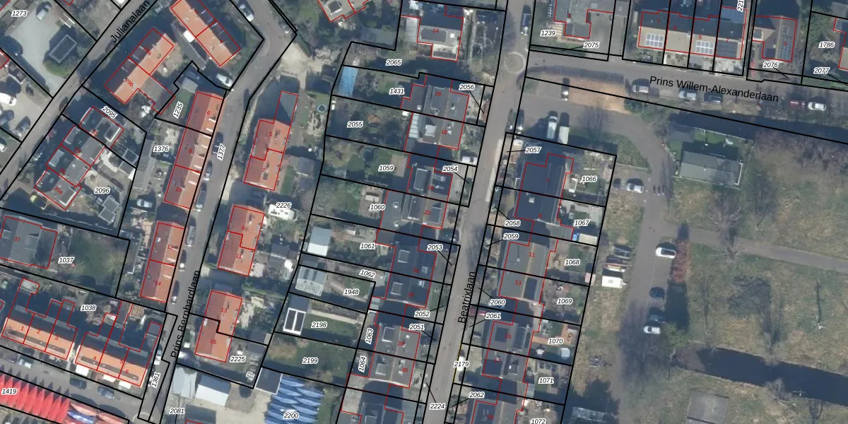 Het perceel waarop Beatrixlaan 22 staat heeft een oppervlakte van 321 m². Dit is een groot perceel. De perceeloppervlakte wordt geregistreerd door het Kadaster. Gedetailleerde informatie over de maten van dit perceel kunt u vinden in het rapport Kadastrale kaart met maatvoering van Beatrixlaan 22.