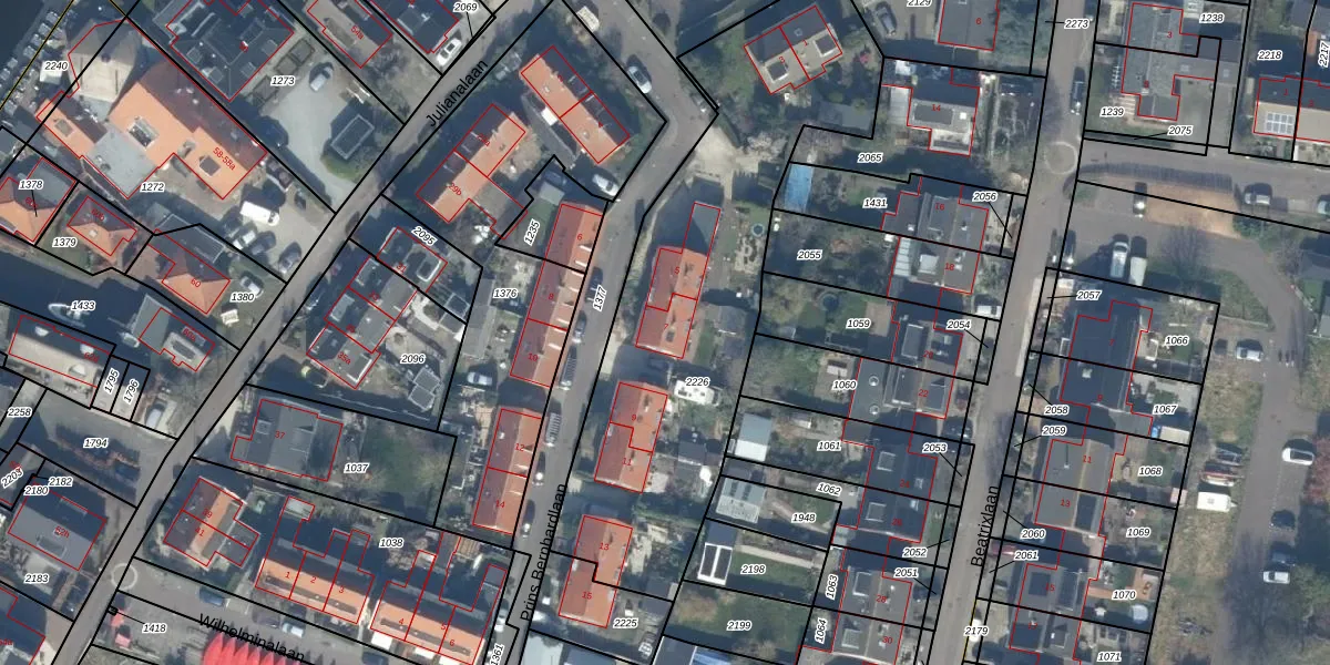 Het perceel waarop Prins Bernhardlaan 7 staat heeft een oppervlakte van 1784 m². Dit is een zeer groot perceel. De perceeloppervlakte wordt geregistreerd door het Kadaster. Gedetailleerde informatie over de maten van dit perceel kunt u vinden in het rapport Kadastrale kaart met maatvoering van Prins Bernhardlaan 7.