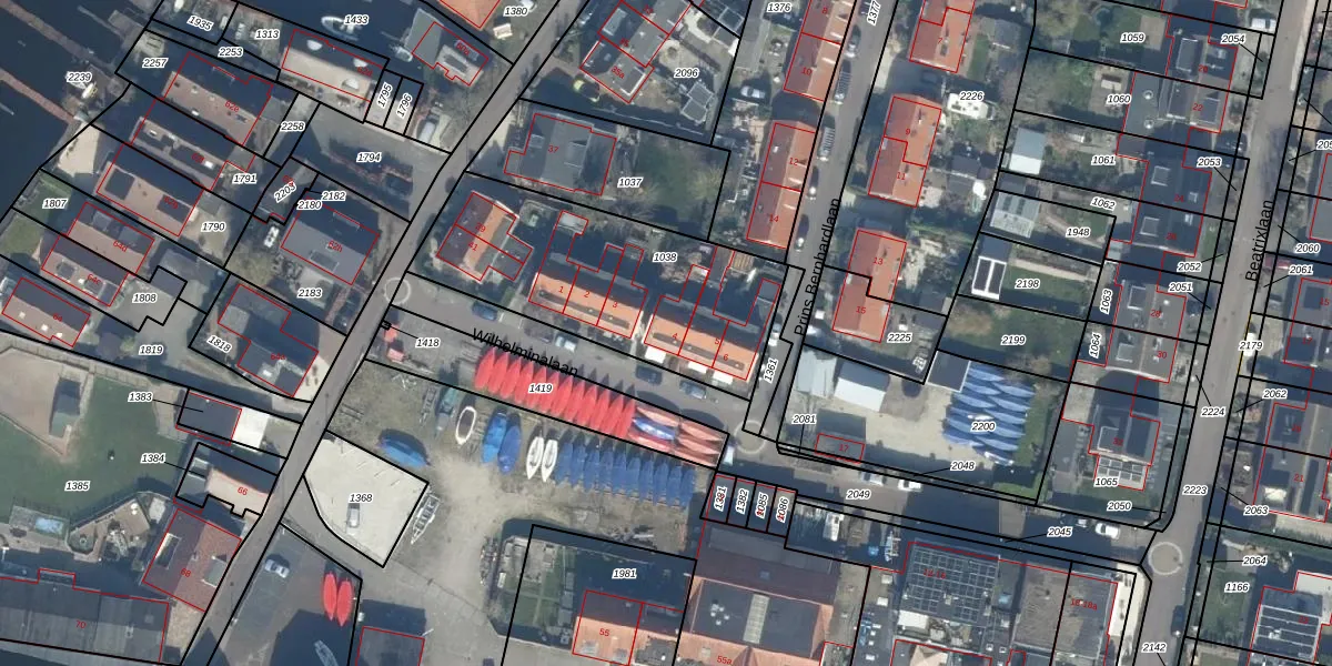 Het perceel waarop Wilhelminalaan 4 staat heeft een oppervlakte van 1015 m². Dit is een zeer groot perceel. De perceeloppervlakte wordt geregistreerd door het Kadaster. Gedetailleerde informatie over de maten van dit perceel kunt u vinden in het rapport Kadastrale kaart met maatvoering van Wilhelminalaan 4.