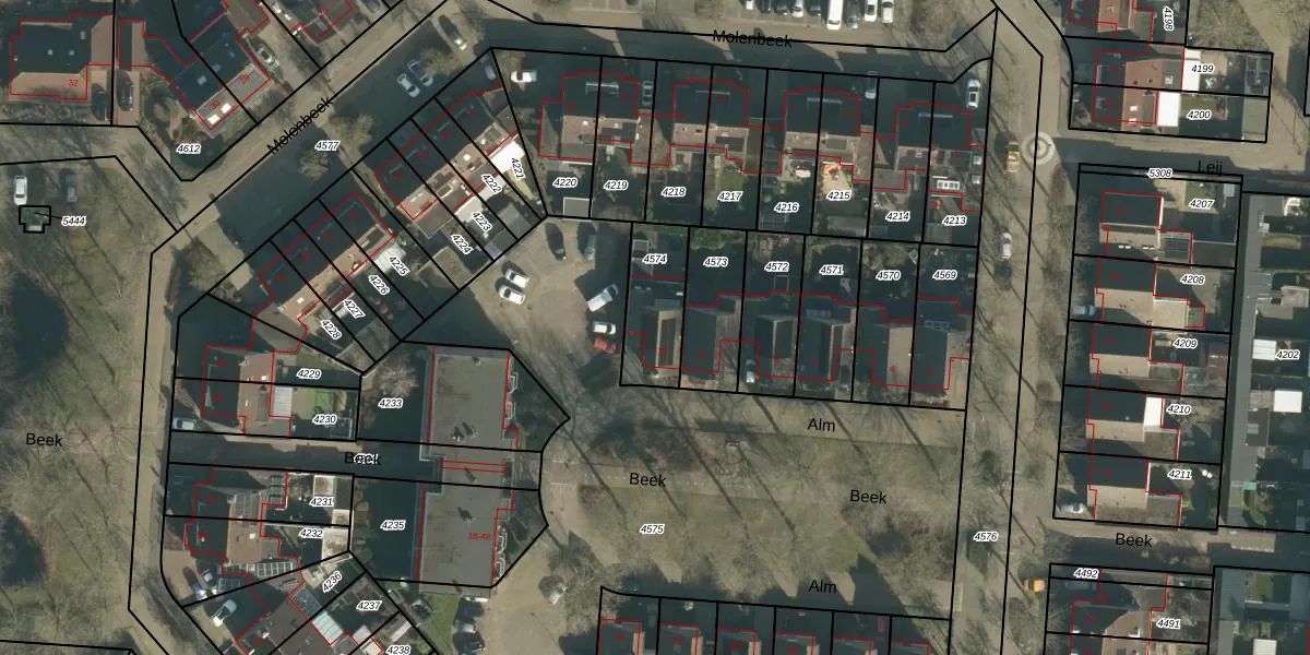 Het perceel waarop Alm 12 staat heeft een oppervlakte van 220 m². Dit is een middelgroot perceel. De perceeloppervlakte wordt geregistreerd door het Kadaster. Gedetailleerde informatie over de maten van dit perceel kunt u vinden in het rapport Kadastrale kaart met maatvoering van Alm 12.
