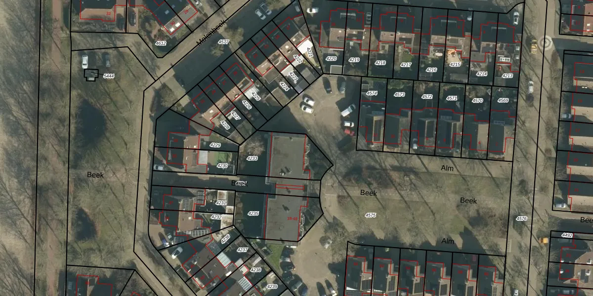 Het perceel waarop Alm 26 staat heeft een oppervlakte van 415 m². Dit is een groot perceel. De perceeloppervlakte wordt geregistreerd door het Kadaster. Gedetailleerde informatie over de maten van dit perceel kunt u vinden in het rapport Kadastrale kaart met maatvoering van Alm 26.
