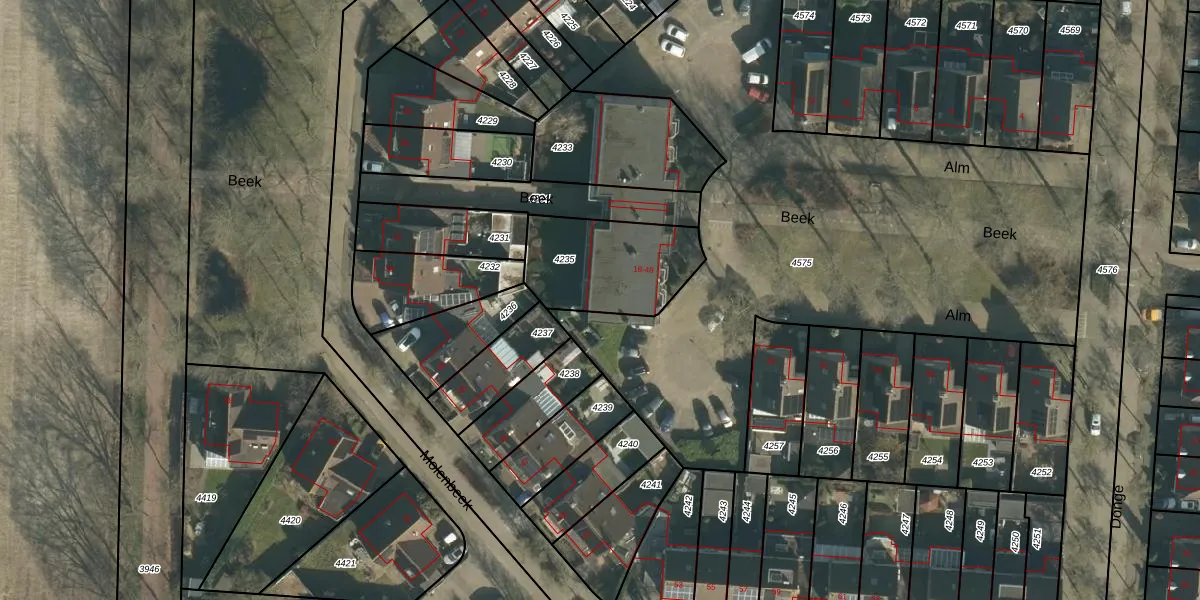 Het perceel waarop Alm 32 staat heeft een oppervlakte van 409 m². Dit is een groot perceel. De perceeloppervlakte wordt geregistreerd door het Kadaster. Gedetailleerde informatie over de maten van dit perceel kunt u vinden in het rapport Kadastrale kaart met maatvoering van Alm 32.