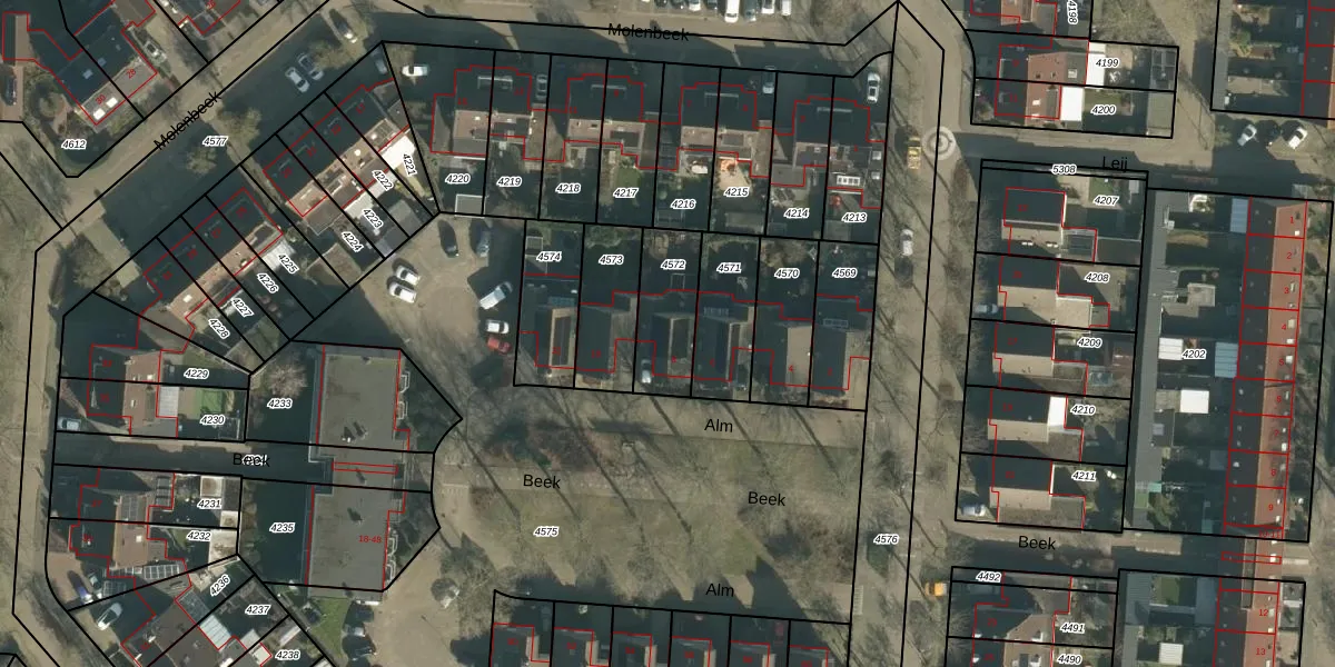 Het perceel waarop Alm 8 staat heeft een oppervlakte van 220 m². Dit is een middelgroot perceel. De perceeloppervlakte wordt geregistreerd door het Kadaster. Gedetailleerde informatie over de maten van dit perceel kunt u vinden in het rapport Kadastrale kaart met maatvoering van Alm 8.