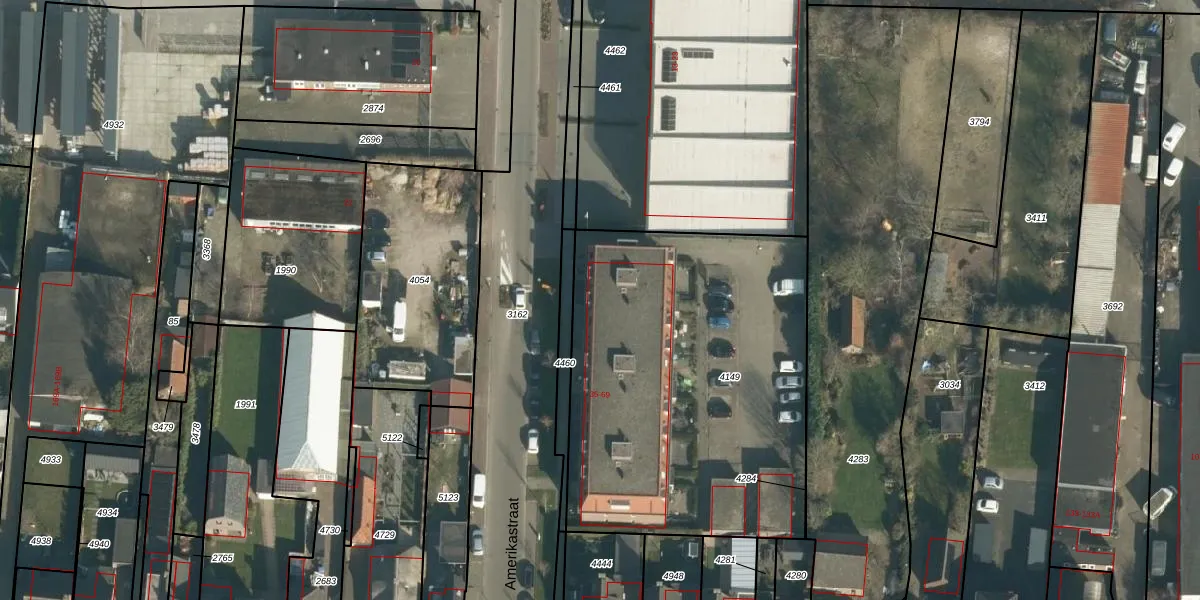 Het perceel waarop Amerikastraat 37 staat heeft een oppervlakte van 1979 m². Dit is een zeer groot perceel. De perceeloppervlakte wordt geregistreerd door het Kadaster. Gedetailleerde informatie over de maten van dit perceel kunt u vinden in het rapport Kadastrale kaart met maatvoering van Amerikastraat 37.