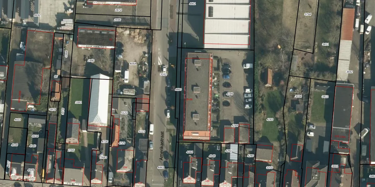 Het perceel waarop Amerikastraat 43 staat heeft een oppervlakte van 1979 m². Dit is een zeer groot perceel. De perceeloppervlakte wordt geregistreerd door het Kadaster. Gedetailleerde informatie over de maten van dit perceel kunt u vinden in het rapport Kadastrale kaart met maatvoering van Amerikastraat 43.