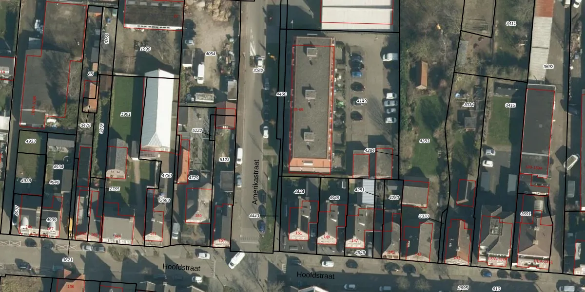 Het perceel waarop Amerikastraat 49 staat heeft een oppervlakte van 1979 m². Dit is een zeer groot perceel. De perceeloppervlakte wordt geregistreerd door het Kadaster. Gedetailleerde informatie over de maten van dit perceel kunt u vinden in het rapport Kadastrale kaart met maatvoering van Amerikastraat 49.