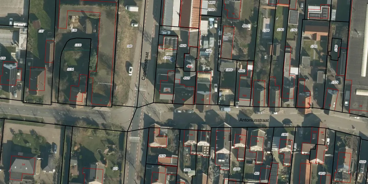 Antoniusstraat 45 is gelegen op kadastraal perceel LOO00L4929. Deze kadastrale aanduiding is uniek en wordt gebruikt door het Kadaster om eigendomsrechten en andere zakelijke rechten vast te leggen. Het perceel maakt onderdeel uit van de kadastrale gemeente Loon op Zand.