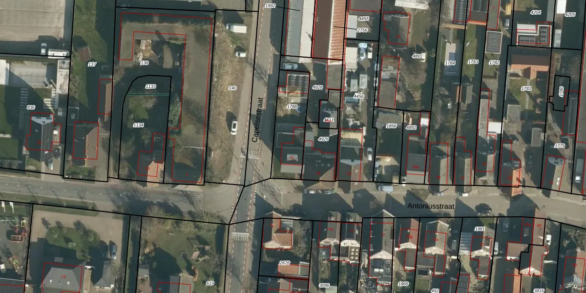 Het perceel waarop Antoniusstraat 47 staat heeft een oppervlakte van 390 m². Dit is een groot perceel. De perceeloppervlakte wordt geregistreerd door het Kadaster. Gedetailleerde informatie over de maten van dit perceel kunt u vinden in het rapport Kadastrale kaart met maatvoering van Antoniusstraat 47.