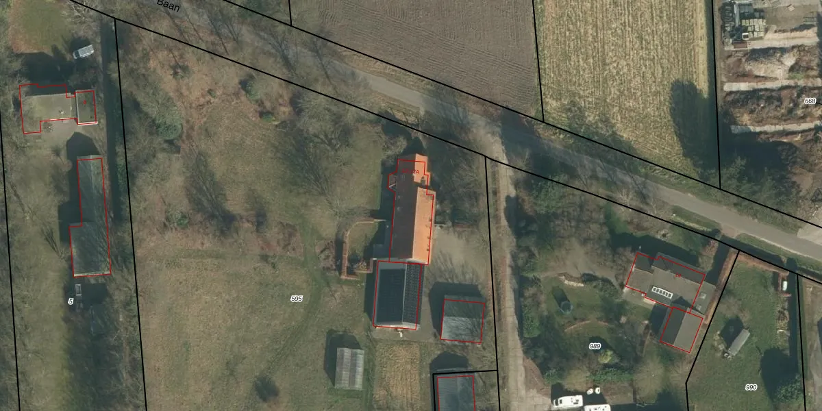 Het perceel waarop Baan 12-A staat heeft een oppervlakte van 8775 m². Dit is een zeer groot perceel. De perceeloppervlakte wordt geregistreerd door het Kadaster. Gedetailleerde informatie over de maten van dit perceel kunt u vinden in het rapport Kadastrale kaart met maatvoering van Baan 12-A.