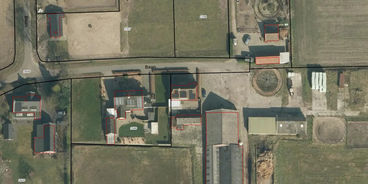 Het perceel waarop Baan 42 staat heeft een oppervlakte van 3,0 ha. Dit is een zeer groot perceel. De perceeloppervlakte wordt geregistreerd door het Kadaster. Gedetailleerde informatie over de maten van dit perceel kunt u vinden in het rapport Kadastrale kaart met maatvoering van Baan 42.
