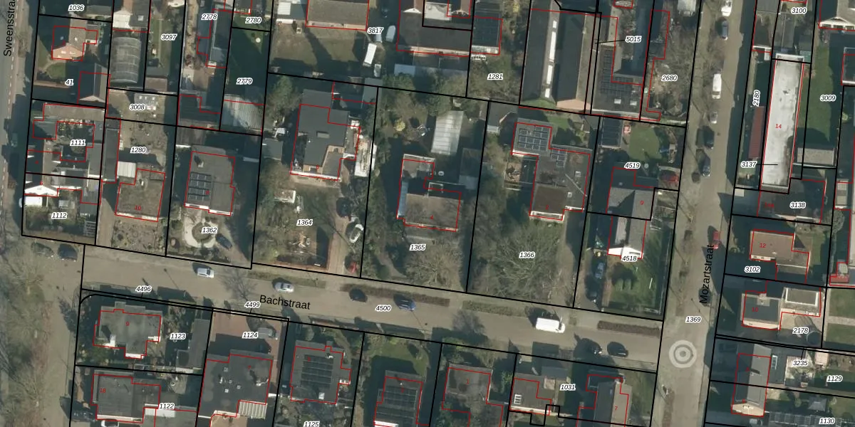 Het perceel waarop Bachstraat 4 staat heeft een oppervlakte van 1166 m². Dit is een zeer groot perceel. De perceeloppervlakte wordt geregistreerd door het Kadaster. Gedetailleerde informatie over de maten van dit perceel kunt u vinden in het rapport Kadastrale kaart met maatvoering van Bachstraat 4.