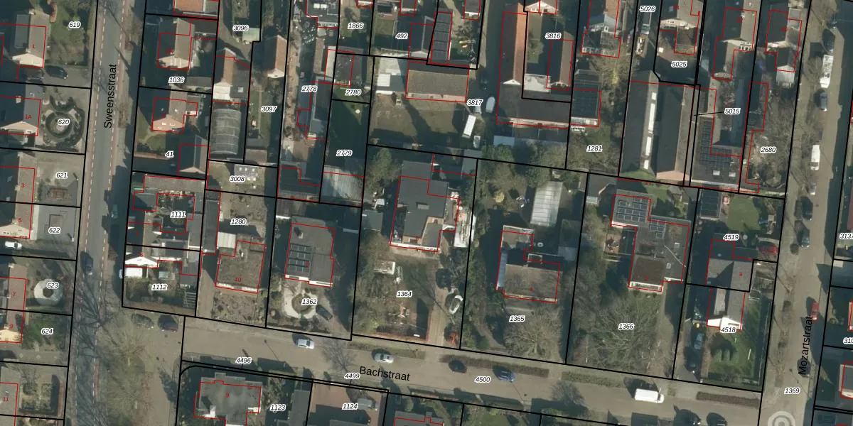 Bachstraat 6 is gelegen op kadastraal perceel LOO00L1364. Deze kadastrale aanduiding is uniek en wordt gebruikt door het Kadaster om eigendomsrechten en andere zakelijke rechten vast te leggen. Het perceel maakt onderdeel uit van de kadastrale gemeente Loon op Zand.