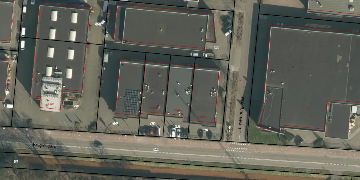 Het perceel waarop Belgiëstraat 12-A staat heeft een oppervlakte van 629 m². Dit is een groot perceel. De perceeloppervlakte wordt geregistreerd door het Kadaster. Gedetailleerde informatie over de maten van dit perceel kunt u vinden in het rapport Kadastrale kaart met maatvoering van Belgiëstraat 12-A.
