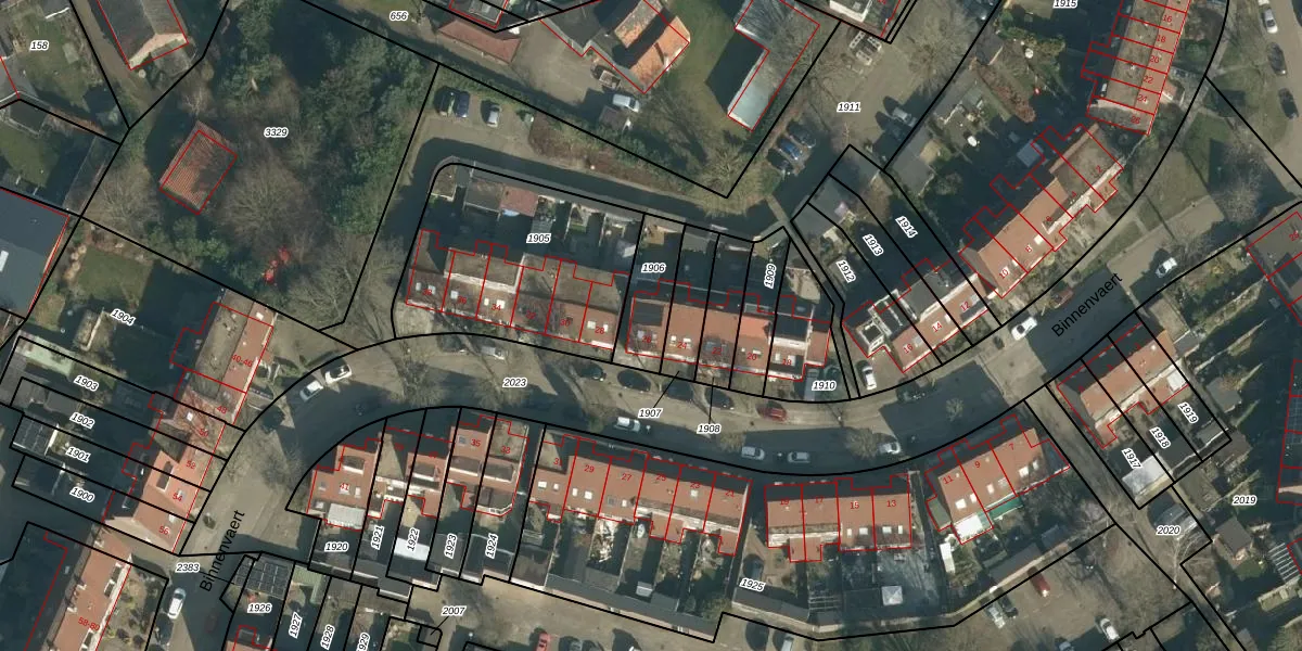 Het perceel waarop Binnenvaert 26 staat heeft een oppervlakte van 165 m². Dit is een middelgroot perceel. De perceeloppervlakte wordt geregistreerd door het Kadaster. Gedetailleerde informatie over de maten van dit perceel kunt u vinden in het rapport Kadastrale kaart met maatvoering van Binnenvaert 26.