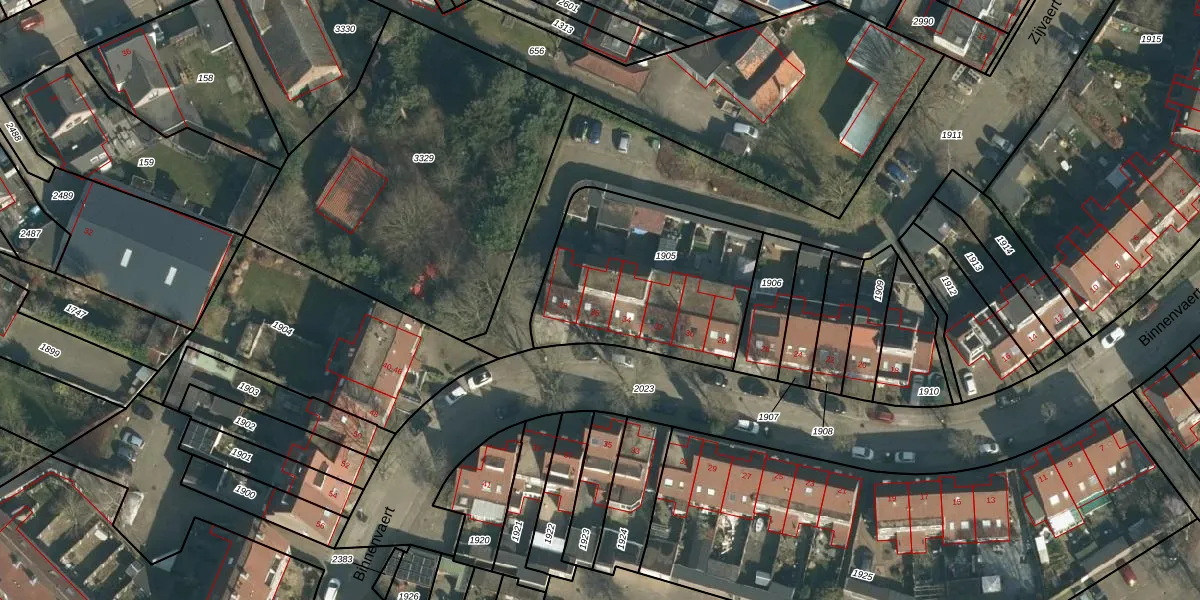 Het perceel waarop Binnenvaert 36 staat heeft een oppervlakte van 837 m². Dit is een groot perceel. De perceeloppervlakte wordt geregistreerd door het Kadaster. Gedetailleerde informatie over de maten van dit perceel kunt u vinden in het rapport Kadastrale kaart met maatvoering van Binnenvaert 36.