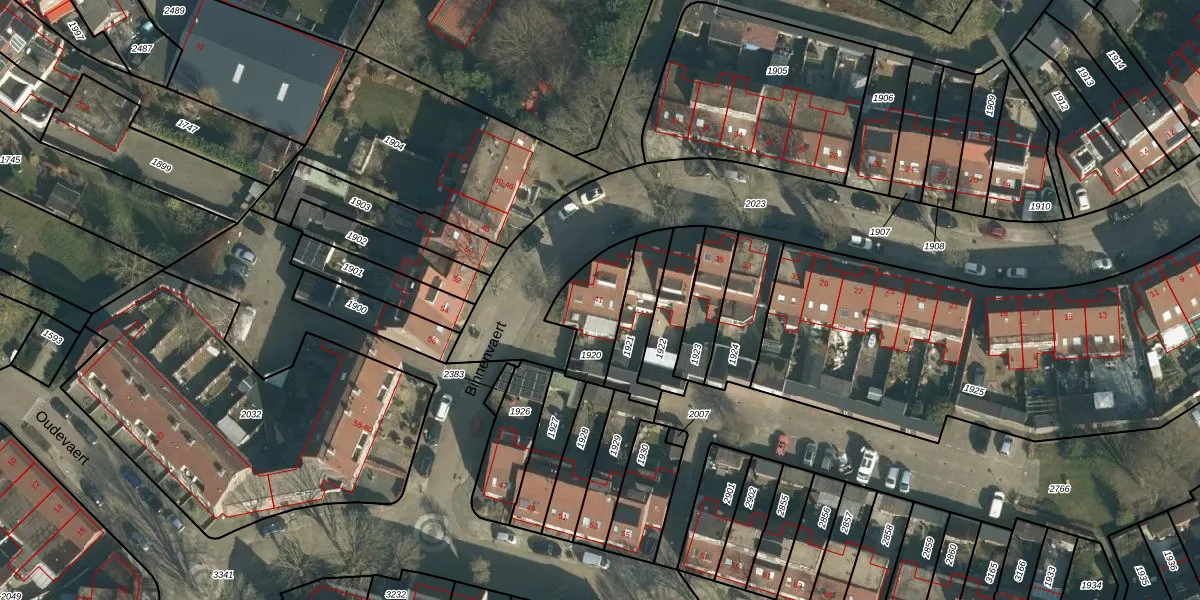 Gebruik de zoekbalk of klik op een perceel voor informatie over de adressen binnen dit perceel.