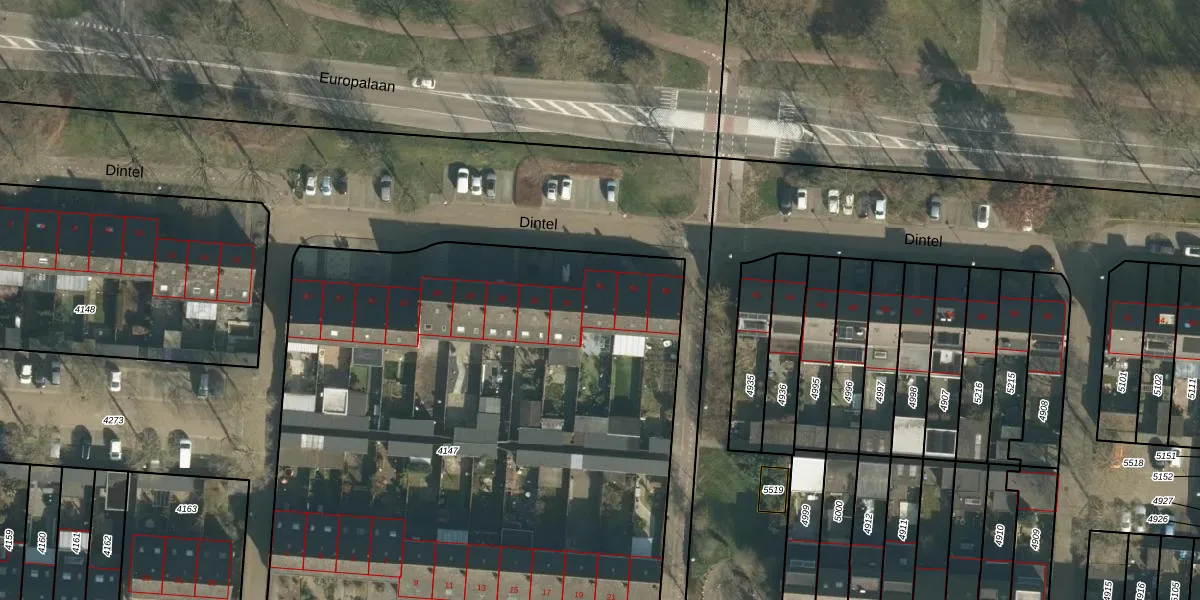Het perceel waarop Dintel 36 staat heeft een oppervlakte van 4058 m². Dit is een zeer groot perceel. De perceeloppervlakte wordt geregistreerd door het Kadaster. Gedetailleerde informatie over de maten van dit perceel kunt u vinden in het rapport Kadastrale kaart met maatvoering van Dintel 36.
