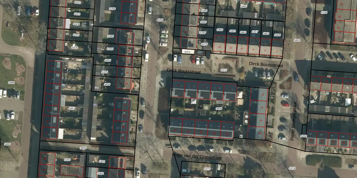 Het perceel waarop Dirck Boutsstraat 9 staat heeft een oppervlakte van 1727 m². Dit is een zeer groot perceel. De perceeloppervlakte wordt geregistreerd door het Kadaster. Gedetailleerde informatie over de maten van dit perceel kunt u vinden in het rapport Kadastrale kaart met maatvoering van Dirck Boutsstraat 9.