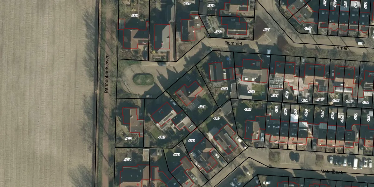 Gebruik de zoekbalk of klik op een perceel voor informatie over de adressen binnen dit perceel.