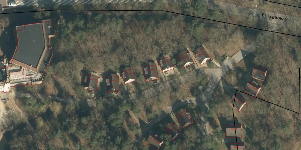 Het perceel waarop Eftelingsestraat 7-H-940 staat heeft een oppervlakte van 15,4 ha. Dit is een zeer groot perceel. De perceeloppervlakte wordt geregistreerd door het Kadaster. Gedetailleerde informatie over de maten van dit perceel kunt u vinden in het rapport Kadastrale kaart met maatvoering van Eftelingsestraat 7-H-940.