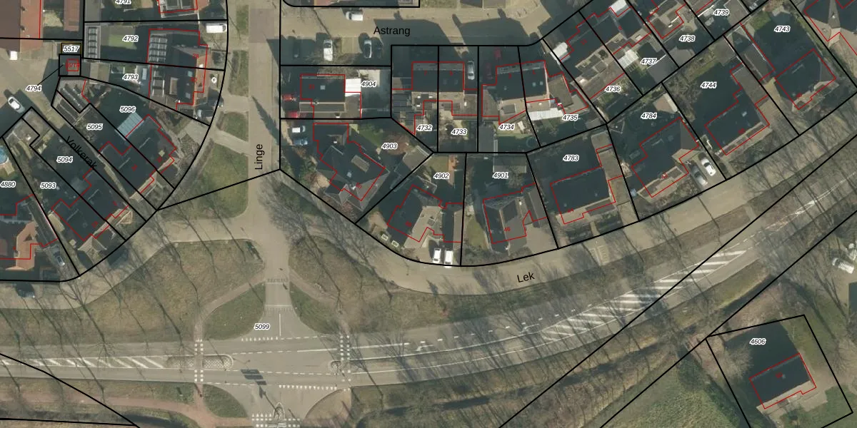 Het perceel waarop Lek 48 staat heeft een oppervlakte van 445 m². Dit is een groot perceel. De perceeloppervlakte wordt geregistreerd door het Kadaster. Gedetailleerde informatie over de maten van dit perceel kunt u vinden in het rapport Kadastrale kaart met maatvoering van Lek 48.